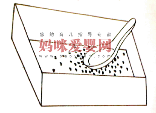 材料:爱上海海面屑(塑料泡沫屑),洁净的塑料盒,塑料勺,全毛或腈纶毛衣1件。