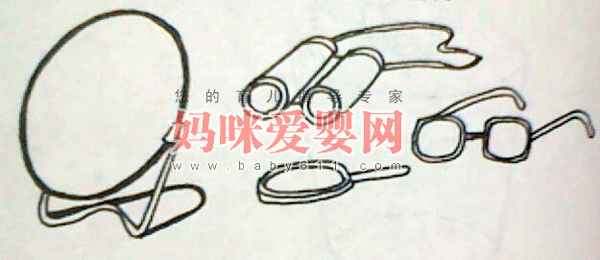 材料:家庭用的平面镜1面,哈哈镜1面,放大镜(凸透镜)1面,望远镜1个,近视镜1副。