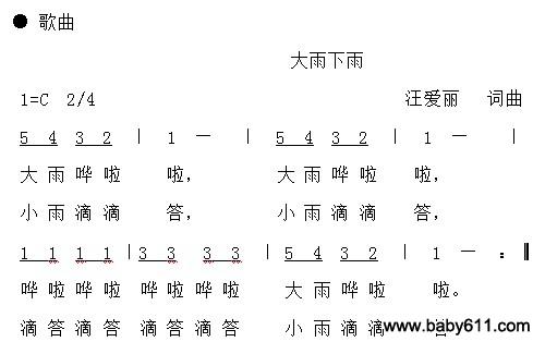 ◎歌曲《大雨小雨》(见语言 音乐光盘CD)。