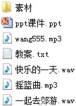 课件说明:课件中第4、5页,先是出现各种实物的剪影,点击鼠标后一样一样出现,出现的同时带音效。