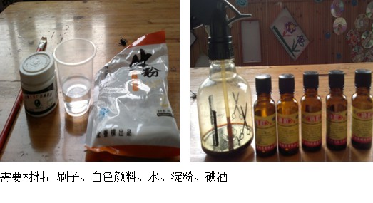 生活中存在许多神奇的现象,碘和淀粉在一起发生的显而易见的反应,引起了孩子足够的好奇心。《淀粉躲猫猫》活动方案是利用淀粉遇碘变色的化学原理设计的。碘和淀粉是两种安全实验物品,便于孩子操作。虽然对孩子来说,"淀粉"这一词是陌生的,但孩子们对面包、馒头等面食却是再熟悉不过了。发现科学,并在生活中利用科学,是孩子们学习科学的最好途径。利用碘酒和淀粉的神奇反应,寻找食物中的"淀粉",进一步激发孩子的探索欲望。