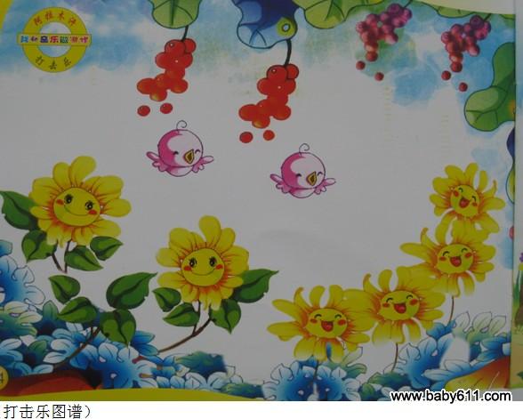 5、幼儿一边欣赏音乐,一边欣赏图,教师按音乐节奏指点图谱。