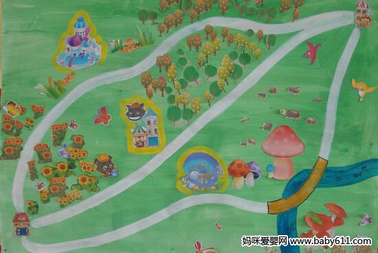 2.幼儿分成三小组编故事,每组发一张故事路线图。每组幼儿自选一条路线进行创编。要求给故事取一个好听的名字。