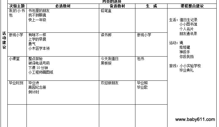 2.向幼儿介绍一些小学生的生活及行为准则,让幼儿有心理上的准备。