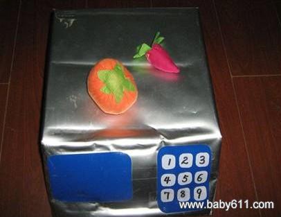 玩具特色:利用废旧的包装盒制作,取材方便,废物利用,节约能源。直接在盒子上粘贴,不需要复杂的工艺,制作过程简单、快速,可以节约教师的时间。