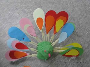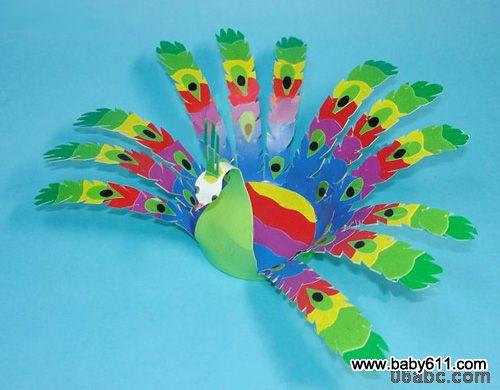 幼儿园废旧物手工制作图:衣服夹:孔雀