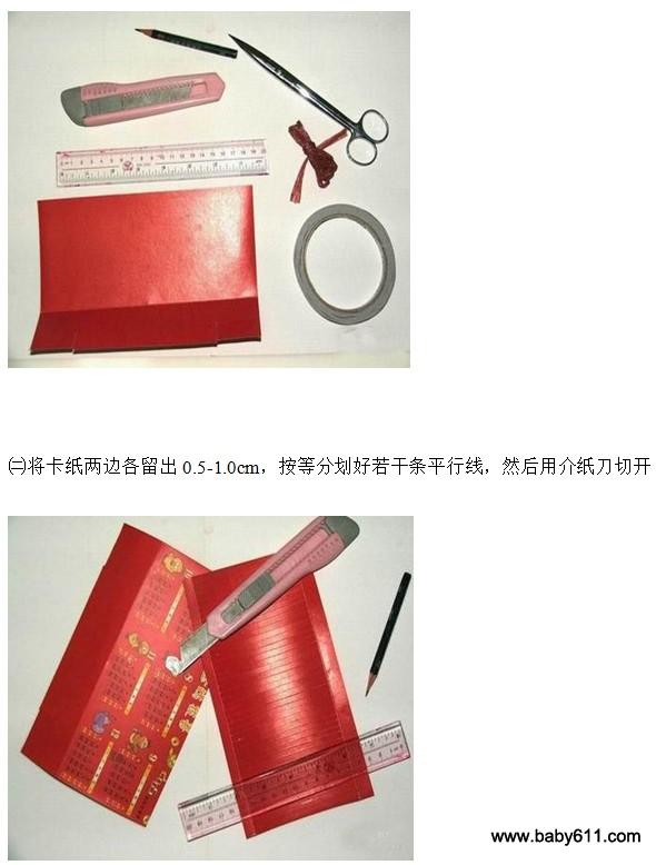 ㈠准备一张长方形的红色卡纸,用一张过期的旧月历卡就可以啦;