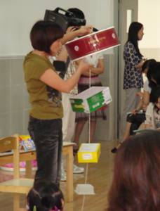 一、活动目标: 1、 通过观察、比较,在了解盒子的大小、形状、用途等过程中积累相关的生活经验。 2、 在感知不同盒子外形特征的过程中,知道一些整理物品的方法。 重点:了解盒子的大小、形状、用途及根据用途分类。 难点:探索一些整理物品的方法(小盒子可以躲进大盒子里面) 二、活动准备: 1、各种盒子——VCD圆盒子、药盒子(帖有1至7的数字)、相同的饼干铁盒2个、餐巾纸盒、牙膏盒子2个、喜糖盒子、肥皂盒子、巧克力盒、眼镜盒子、蛋黄派盒子大小各一 2、自制的套盒一组及大小不一的盒子 3、幼儿16名 三、活动过程: 一、说说自己的盒子 1、找一个盒子,和好朋友说说:“你的盒子是什么样子的,里面是装什么的。” 师:看看地上都是什么呀?(盒子) 师“请你找一个盒子宝宝,和好朋友说一说,你的盒子是什么样子的,里面是装什么的。” 幼儿起身去拿盒子,教师提示:(慢慢走,不要睬到盒子宝宝….) 幼儿回到坐位和同伴交流,教师辅导,“你的盒子是什么样子的,里面是装什么的。” 2、集体交流: 组织幼儿安静,教师提问:“你的盒子是什么样子的,里面是装什么的。” 预设提问(可选择): ��喜糖盒子——这个盒子是什么形状的?它是装什么用的?什么时候会拿到喜糖? (积累经验:三角型的,里面装喜糖的,结婚的时候用喜糖) ��巧克力盒子——这个盒子是什么形状的?它是装什么用的?(积累经验:象花一样的,放巧克力的) ��药盒子——这个放药的盒子怎么和我们平时看到的药盒子不一样呀,上面还有数字呢!为什么要有数字?(积累经验:盒子上的数字1表示这是星期一吃的,2表示星期二吃的,依次类推) ��饼干盒子——这个盒子是什么形状的?它是装什么的?还有谁的盒子也是圆圆的?(积累经验:这个盒子是圆形的,是装饼干,请幼儿找相同圆形的盒子碰一碰)(这里的相同是完全一样的) ��牙膏盒子——这个盒子是什么形状?它是装什么的的?(积累经验:这个盒子是长长的,是装牙膏的,请幼儿找也是牙膏盒子碰一碰)(这里的相同是用途一样,只要是装牙膏的都可以) �� 蛋黄派盒子——这个盒子是什么形状的?它是装什么用的?谁的盒子能和它做朋友?(这里的相同是用途一样,但大小是不一样的)(找到小的蛋黄派盒子)猜猜哪个盒子里装的蛋黄派多?为什么?(积累经验:小盒子装的少,大盒子装的多,小盒子还可以躲到大盒子里)教师示范把小盒子藏到大盒子里,为下面的难点内容做好经验的准备)。 ��眼镜盒子——这个盒子是什么形状的?它是装什么用的?家里还有谁也戴眼镜?(积累经验:这是放眼镜的,到了晚上,眼镜就放在这个盒子里睡觉) 小结:这么多盒子宝宝,他们形状、大小都不一样,里面装的东西也不一样,有的盒子装好吃的东西,有的盒子放用的东西。 3、送盒子宝宝回家: 师:“ 看看您手里的盒子宝宝是装吃的还是用的?放吃的放在这边,放用的请放在那边。 幼儿分类放盒子 交流(重点提问): 教师提问:都放好了,看一看,有问题吗?老师可是有点问题:(根据幼儿摆放来决定问题) 1,这个盒子(牙膏盒)是装什么的?牙膏不是也要能到嘴里的吗,为什么不放在吃的东西这边?(它是刷牙用的,它到了嘴里以后要吐出来的,并请幼儿模仿刷牙的动作) 2,药盒子—(这个药盒为什么放在吃的这边?所有的药都可以吃吗?引导幼儿探索,有的药是不可以吃的,如:红药水、眼药水等。教师教授正确的生活经验,这个药盒可以放到吃的这边,也可以放用的那边,如果盒子里放的是药膏和眼药水,就要放在用的这边。 二、猜猜神奇的盒子 重点提问: 教师出示倒扣的蛋糕盒(蛋糕盒、牛奶盒、鞋盒子、豆腐盒、香水盒、手帕) 提问: ��师“这里还有一个盒子,猜猜里面装的是什么? 蛋糕盒——猜猜里面装的是什么?(教师提问,幼儿猜想) 牛奶盒——方方的牛奶盒子里可以放些什么呢?(幼儿猜想) 鞋盒子——这里面放的是宝宝的鞋子还是妈妈的鞋子?为什么?那我们来比一比(用教师和幼儿的脚都比一下,得出结论:是放宝宝的鞋子的,因为,盒子小,妈妈的鞋子放不进去,宝宝的鞋子正好)此环节是为突破难点做铺垫的。 豆腐盒——这是什么盒子?里面还有盒子吗?你怎么知道?(这是豆腐盒子,里面还有盒子,因为它是透明的) 香水盒——这是什么盒子?里面还有盒子吗?(幼儿猜想)教师可摇动盒子,听听里面有盒子吗?)教师用夸张的方法从盒子里拿出手帕并展开?提问:“呀,这么大的手帕是怎么藏到这么小的盒子里的?幼儿回答:手帕折小(请幼儿动嘴巴,教师动手,示范折手帕)(此环节活泼、有趣,是一个小小的高潮,大大的调动幼儿参与活动的积极性,有效激发幼儿参与活动的欲望) ��盒子宝宝的全家都来了,数数一共有几个?(5) ��这么多盒子宝宝是怎么排队的? (一个接一个、从大到小) 小结:这么多盒子,它们一个接着一个,圆圆的蛋糕盒子里藏着方方的牛奶盒,牛奶盒里住着宝宝的鞋盒子,鞋盒子里睡着透明的豆腐盒子、豆腐盒子里躺着香香的香水盒子。原来,小盒子可以躲进大盒子里面,妈妈抱着宝宝,一个抱着一个,这么多盒子看起来就像一个盒子。(教师边总结,边示范把盒子一个一个放回去)(这是难点的突破) 三、理理各种各样的盒子 师:“后面有很多盒子,你也找一个盒子妈妈,把所有的盒子宝宝都想办法藏在盒子妈妈里面,行吗” 交代任务:这个筐里的盒子比较多,我请2个小朋友一起藏(尝试2个小朋友合作