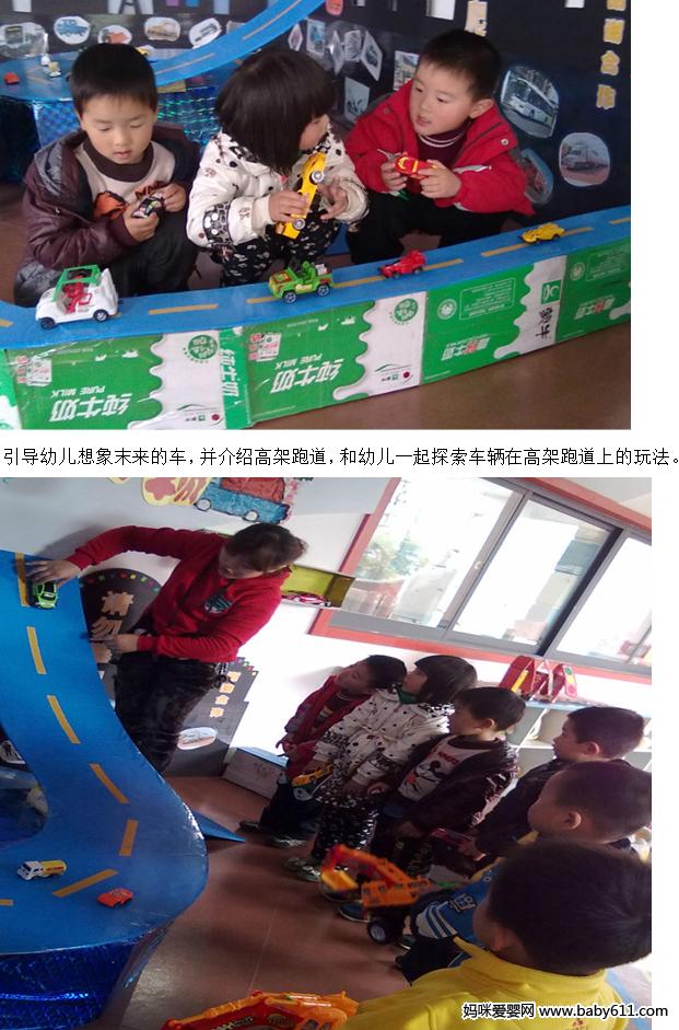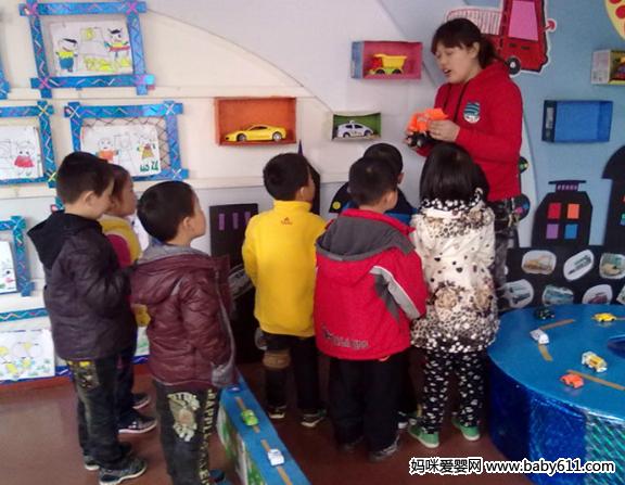 2、 "汽车城里面有许多各式各样的汽车,小朋友去了以后要看一看你认识几种车,最喜欢什么样的车。"带幼儿参观汽车城,让幼儿在汽车城内自由活动,观看图看和汽车模型,请幼儿和自己的好朋友相互讨论,说一说自己认识的车的名字。