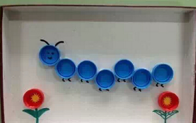 4、串瓶盖材料:各种颜色、大小不同的瓶盖(中间穿个孔)、钓鱼绳。