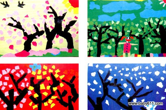 活动建议☆环境创设 将幼儿作品布置在生活区或科学区,让幼儿感知四季的色彩变化。