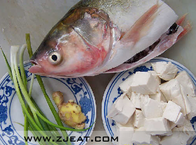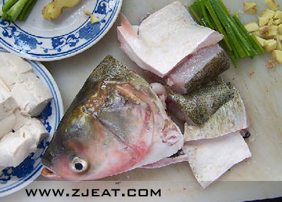 爱上海材料:鱼头一个,去鳞洗尽,葱姜少许,豆腐少不了的。