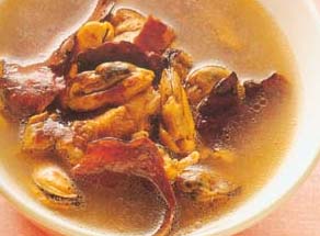 3 炖约1小时,让排骨和淡菜的鲜味完全释出,加盐调味即成。