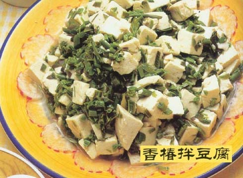 豆腐300克、香椿100克、香油10克、精盐适量。