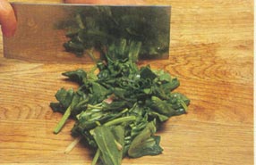 3、菠菜择洗干净切成段,木耳切成块,笋片切成细丝。