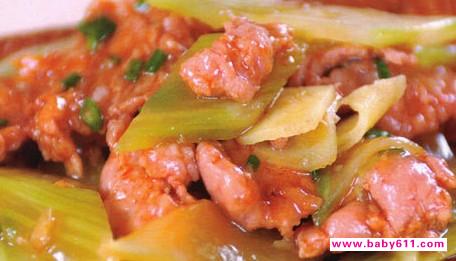 莴苣含钾量较高,有利于促进排尿,它还含有碘元素,具有镇定作用,经常食用有助于消除紧张,帮助睡眠,莴苣中丰富的氟元素可促进牙齿和骨骼的生长;猪肉为人体提供优质蛋白质和必需的脂肪酸、血红素,具有补中益气、生津液、润肠胃、丰肌体、泽皮肤等作用。在孕晚期,准妈妈临近分娩,会出现紧张、睡不着觉的情况,莴苣和猪瘦肉同食,有利于消除紧张,帮助睡眠,还能补中益气、养血补血。
