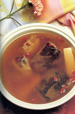 制作:将剖杀好的水鱼洗净,砍成粗件,然后将水鱼与洗净的淮山、枸杞子一起放入炖盅内,加入适量冷开水,用武火隔水炖1—2小时,待温加入适量味料调味,饮汤食汤渣。