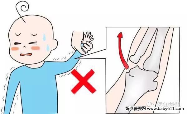 3)不要拉着宝宝的小手将其拉起或身体悬空,这样做看似没怎么用力,但宝宝的身体体量会部分或全部作用在肘关节上,牵拉力度其实很大。