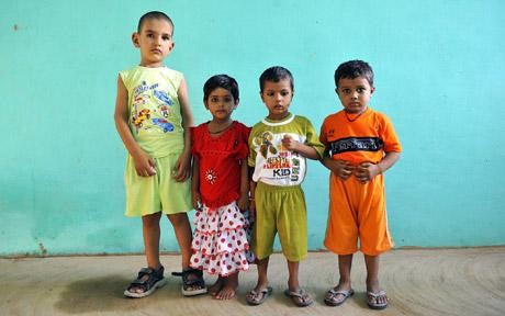 这位叫卡伦·辛格的小巨人母亲辛格女士是亚洲最高女子,身高218厘米,父亲辛格先生则有200厘米。作为两大巨人的孩子,卡伦生下来就重12斤,高71厘米,几乎是普通婴儿的两倍。现在两岁半的他个头已蹿到135厘米,只能穿为10岁小孩子设计的衣服。他特别容易饥饿,每顿要吃5个苹果,喝10大勺蜂蜜。辛格女士说:“当他清晨醒来时,第一件事就是要吃饭喝水。任何时候看别人吃东西,他也要吃。如果我不强行制止,他就会一刻不停地吃”。所以一家人每月光买吃的就要花去124英镑,比其它邻居多三倍。当他上幼儿园时,老师刚开始坚持不收他,认为他应该直接上小学。