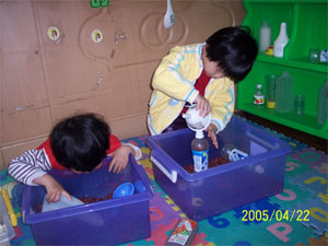 镜头五.玩豆中幼儿的交往 (初步的言语交流)