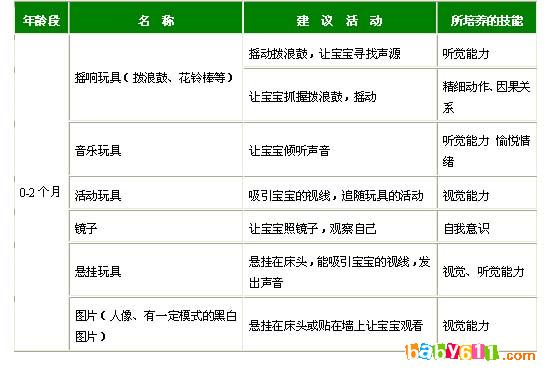 适合0-2个月宝宝的玩具有: