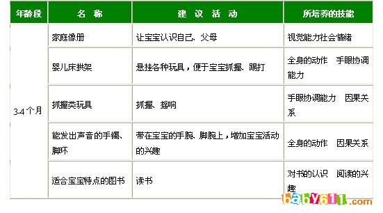 适合3-4个月宝宝的玩具有: