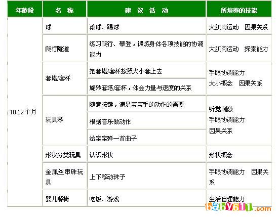 给这个年龄段宝宝提供的玩具要特别注意安全。首先,油漆和材质要无毒,以免宝宝把玩具放入嘴里时发生危险;其次,玩具里的小珠子和缝上去的装饰品要不易脱落,玩具的大小不能小于宝宝的拳头,以免被宝宝误食引起窒息。