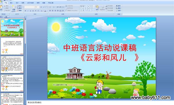 一、说教材《纲要》指出幼儿园应综合利用各种教育资源,共同为幼儿的发展创造良好的条件。自然界中的云彩变幻无穷,常听到幼儿对云彩有这样或那样的想象,为此我们借助散文诗中云彩奇异变化的美妙意境,启发幼儿在看看、想想、说说、做做、玩玩中,了解、感受风对云所带来的变化,以此激发幼儿学习散文诗的兴趣。通过图片、课件,让幼儿进一步感受散文诗的语言美。通过集体活动和自由创作活动,帮助幼儿理解具体内容,使孩子更喜欢作品中的各……