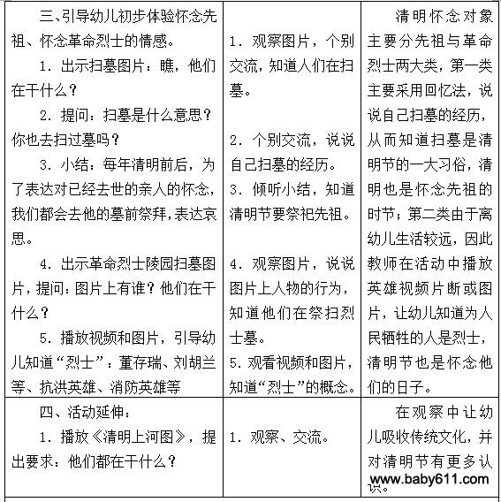活动难点:体验感受清明的气氛,懂得怀念先祖与革命烈士。
