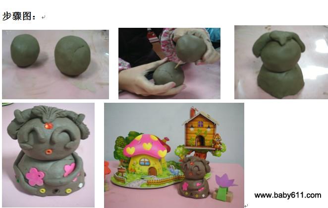 下面请每个小朋友自己来做一个泥娃娃,分泥时要注意份量多少。提示:想想看,我们可以用什么办法将头和身体连接的牢固一点呢?
