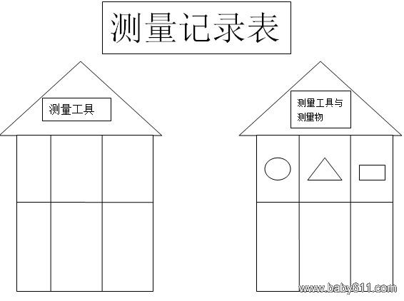 1、测量工具:吸管、筷子、毛线、编织绳、粉笔等自然测量物2、记录工具:记录表、铅笔