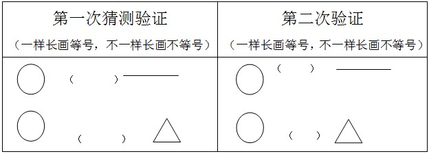 (1)先出示两张猜测不一样结果的记录表,先让幼儿观察一下。