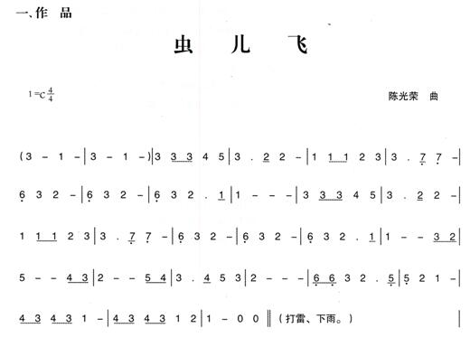 第13-14小节:两手食指伸出,随乐做小虫虫拍动翅膀的动作,在最后一拍藏于背后。