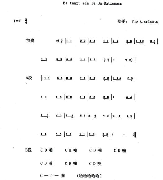 前奏一一一"找朋友"游戏:第1-8小节,教师持锤依次在幼儿头上点,做"找朋友"状,至第9小节前一拍小锤停在一幼儿头上,做"找到一个好朋友"状: