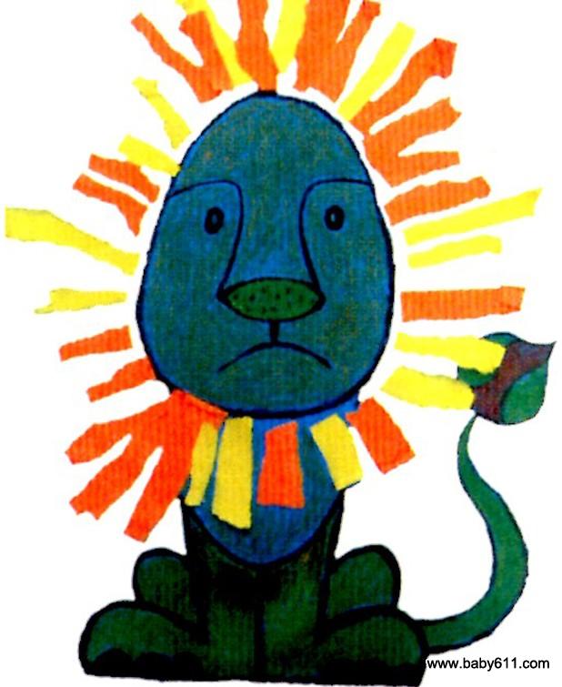 爱上海 要点提示1)把纸条围在狮子头部的轮廓的边缘,呈放射状地粘贴。