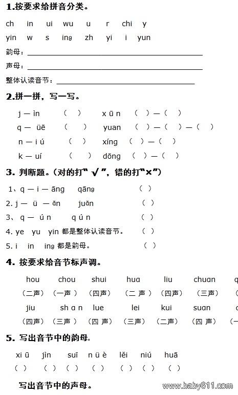 学前班拼音期末测试卷